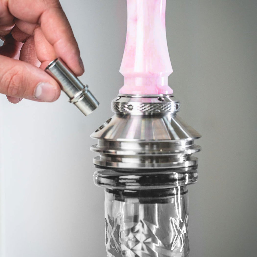 The SPECTRE is equipped with two blow-off switches. This allows you to choose your blow-off style from over 17 variations. With the VYRO MOD sleeves you have even more variations to choose from. To switch between blow-offs, you simply have to turn the lower switch above the base or plate of the shisha.
